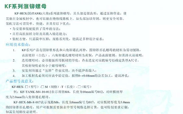 擠壓螺母(型號:KF(KFS))內(nèi)螺紋緊固件,用于裝配PC版。螺紋尺寸#2到#10和M2和M5,廣泛應用于工業(yè)行業(yè),螺母是將機械設備緊密連接起來的零件,通過內(nèi)側(cè)的螺紋,同等規(guī)格螺母和螺栓才能連接在一起。